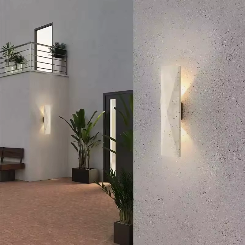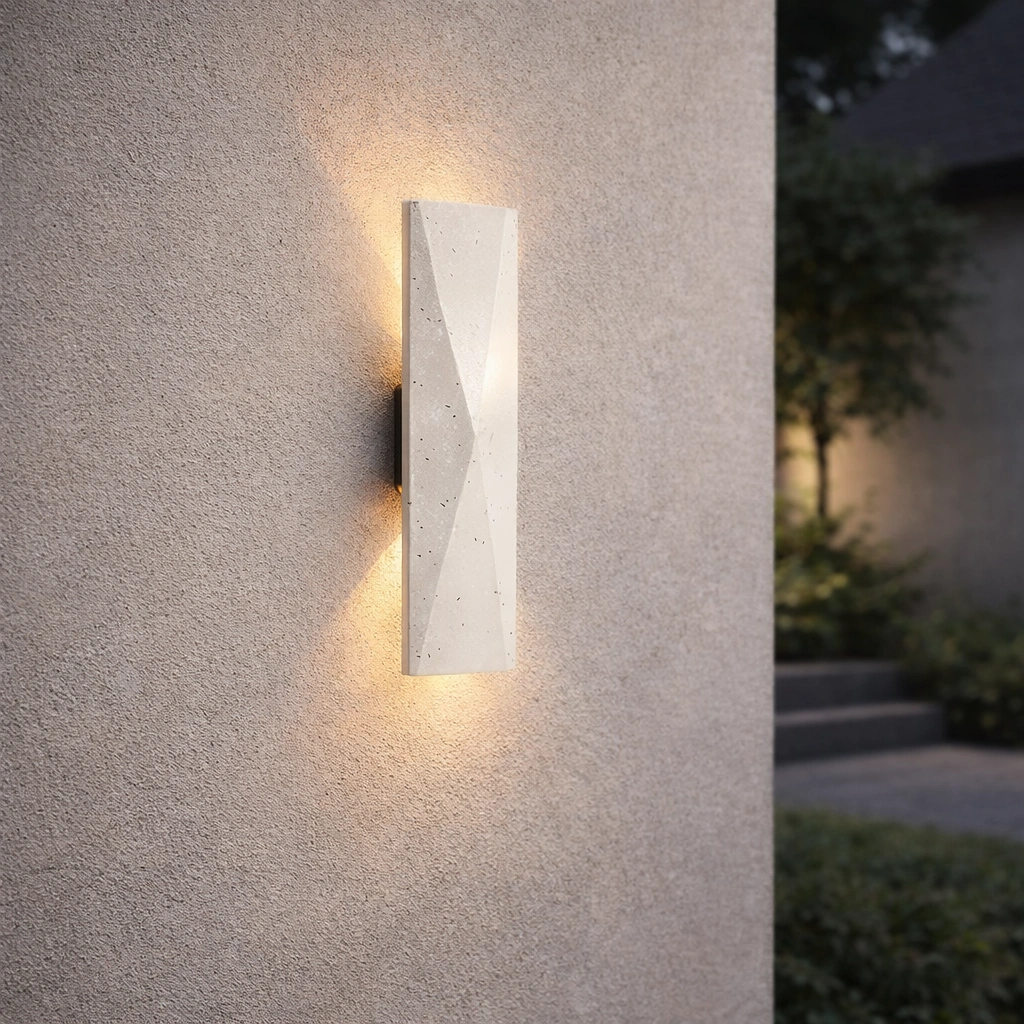 Nowoczesna lampa elewacyjna wykonana z naturalnego kamienia. Wodoodporna, odporna na rdzę i wilgoć, zapewnia trwałe i eleganckie oświetlenie zewnętrzne oraz wewnętrzne. Subtelne, ciepłe światło LED tworzy wyjątkową atmosferę na tarasie, w ogrodzie, korytarzu czy salonie. Stylowa forma inspirowana francuskim retro harmonijnie łączy trwałość z wyrafinowanym designem.