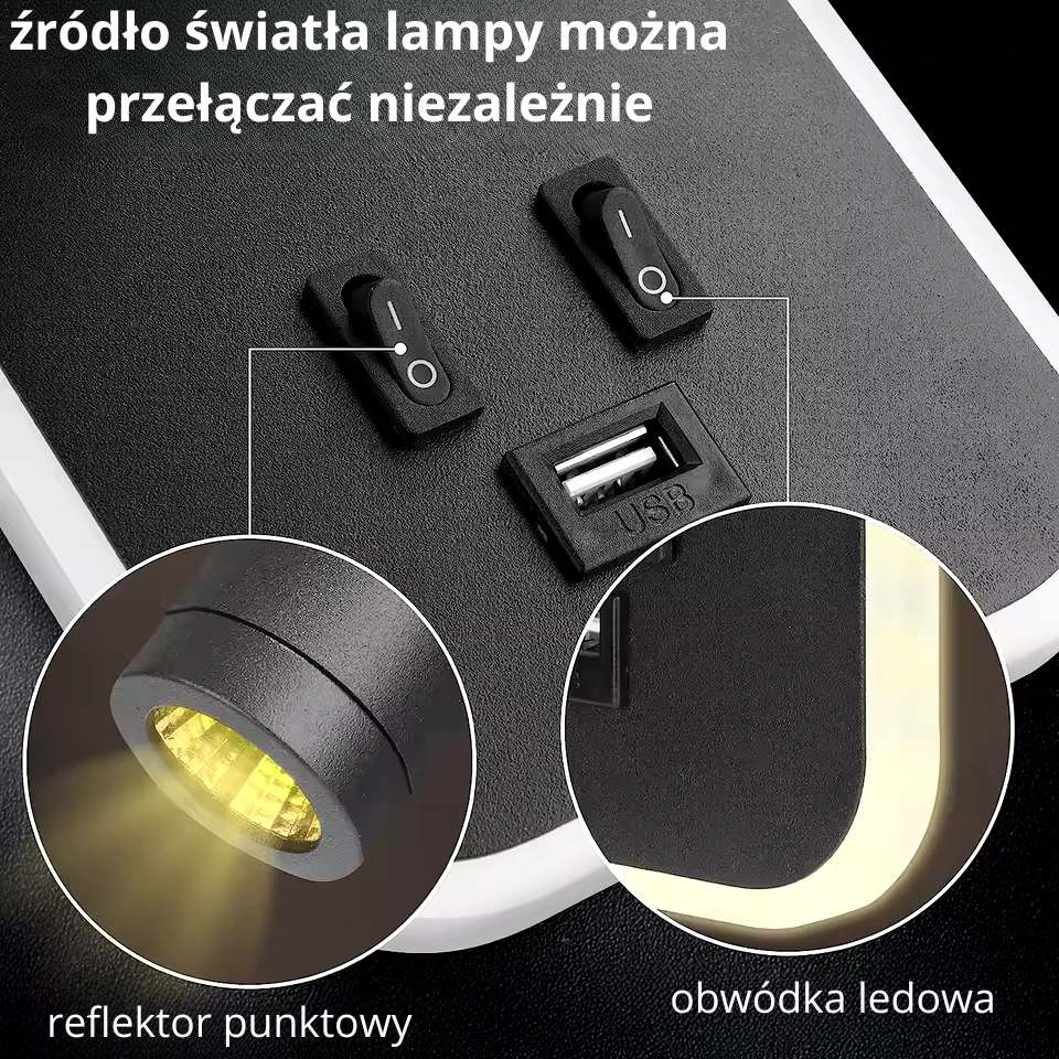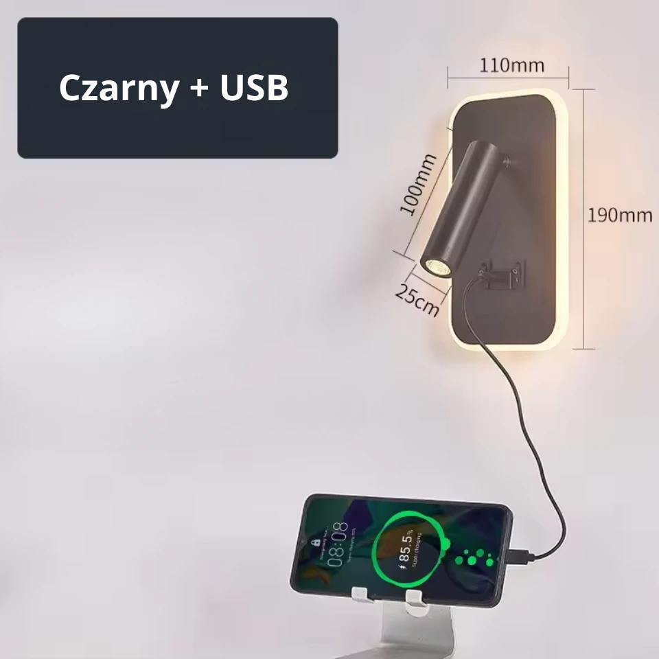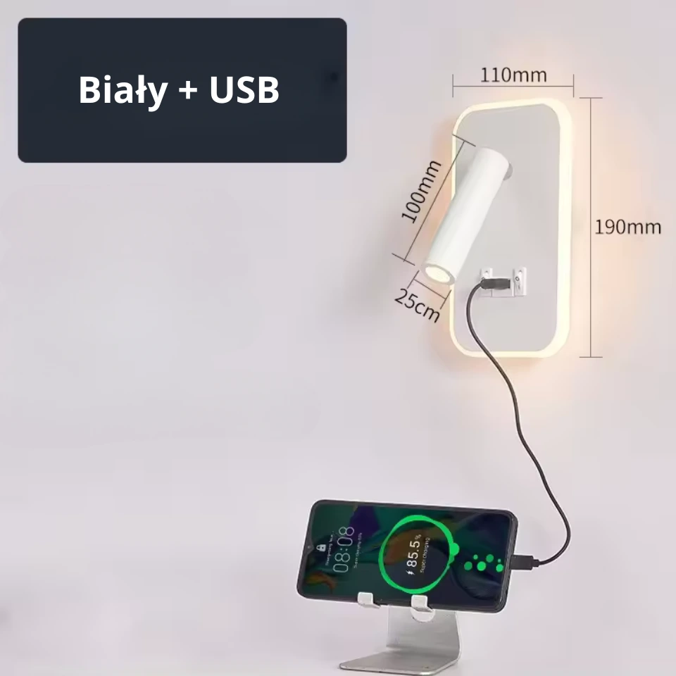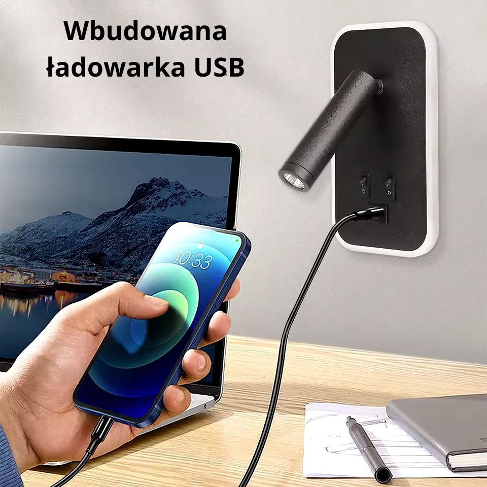 LYSVINN – Nowoczesny kinkiet LED 3w1 z portem USB do sypialni, salonu i gabinetu