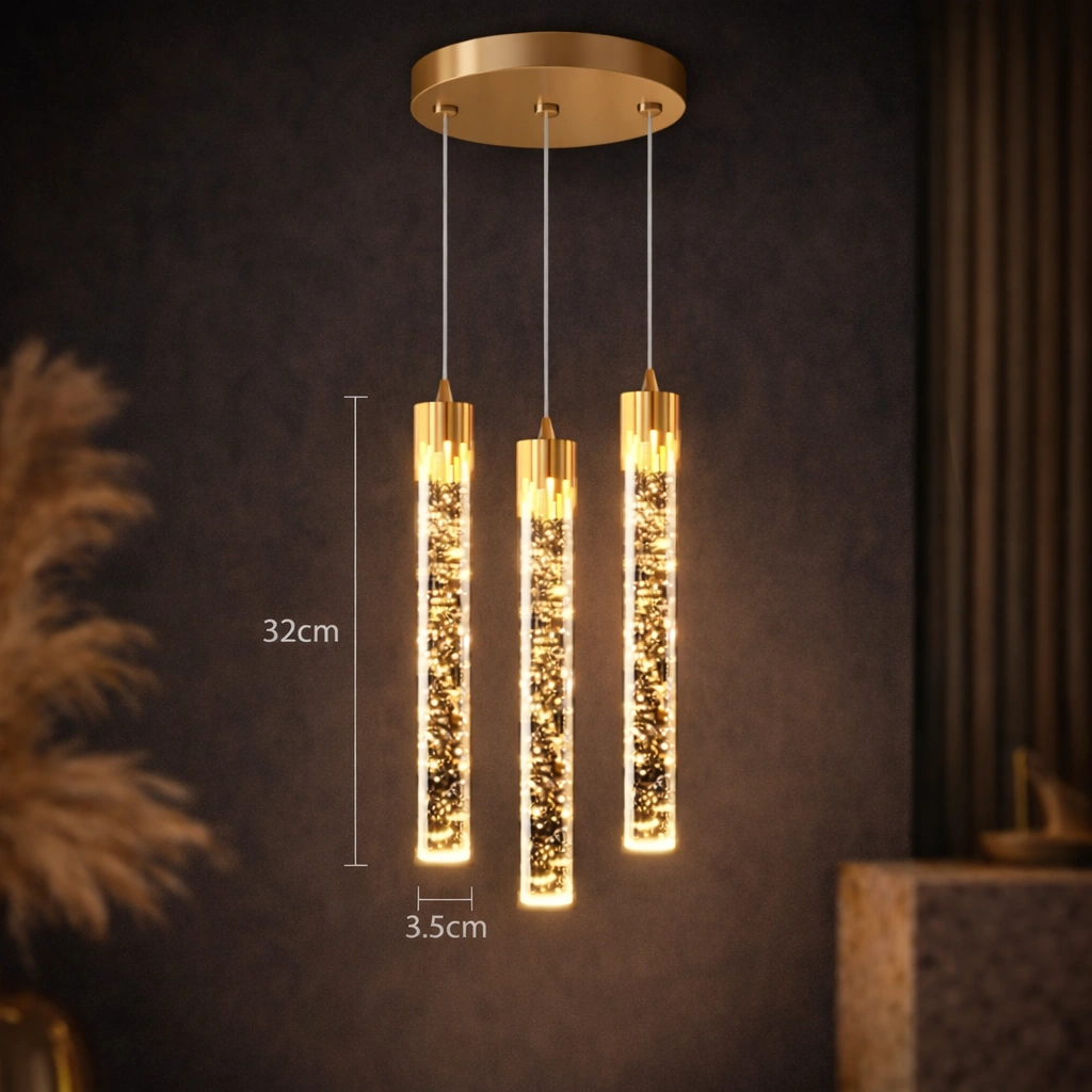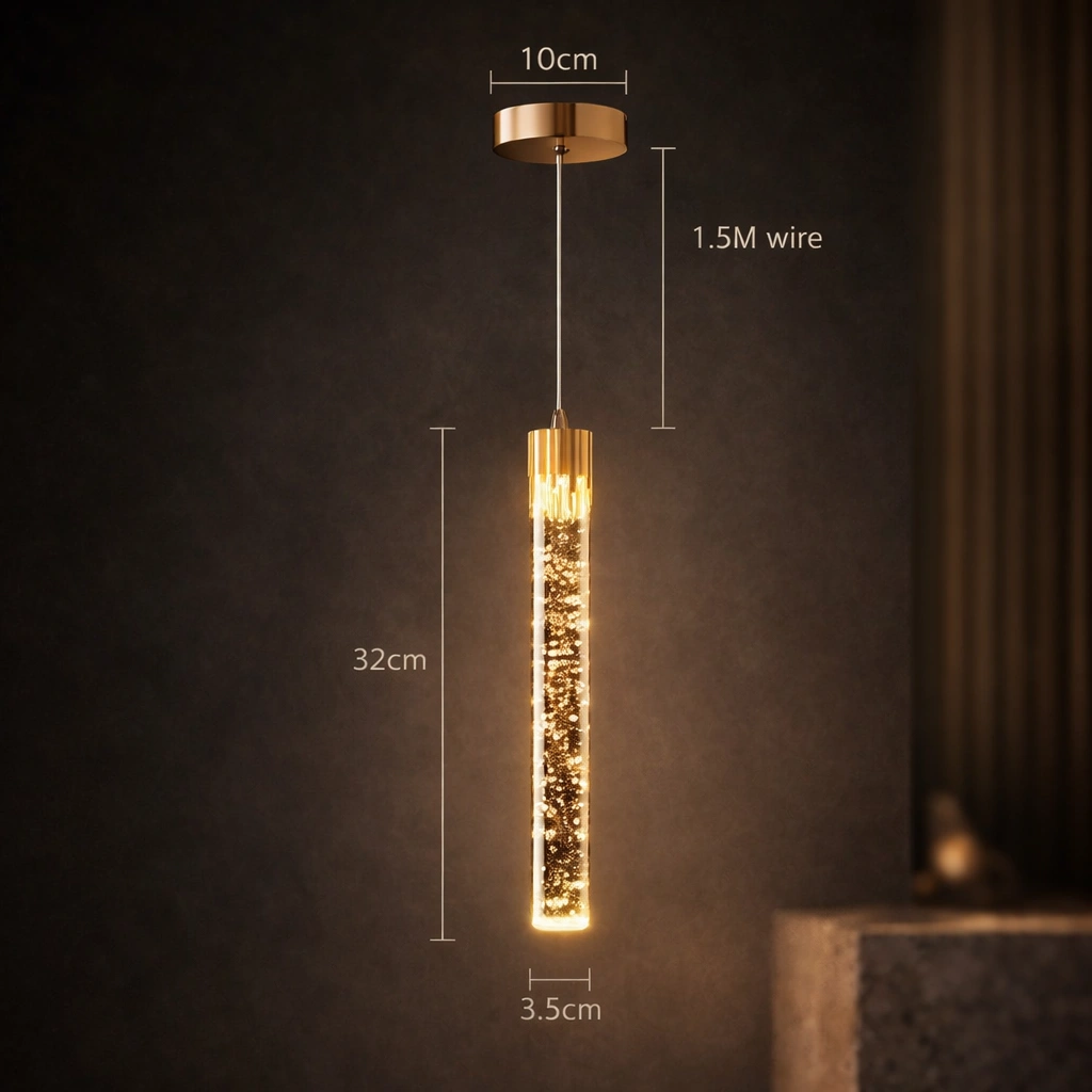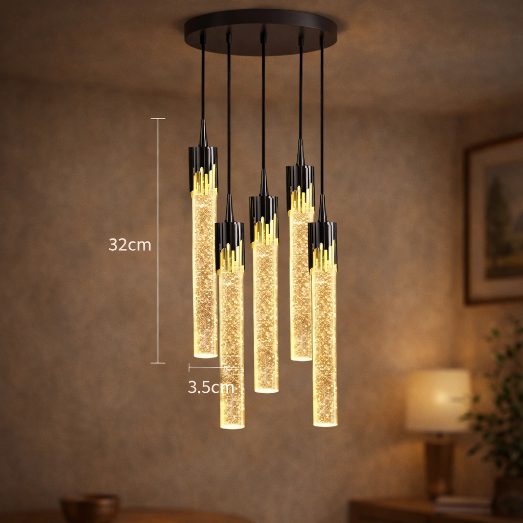 LYRION to nie tylko lampa – to świetlny akcent, który łączy design z funkcjonalnością. Jej forma inspirowana jest światłem unoszącym się w powietrzu – lekkim, dynamicznym, a zarazem eleganckim. Dzięki połączeniu szczotkowanego aluminium z kryształowym akrylem, ta wisząca lampa zachwyca detalem, jakością i unikalnym efektem świetlnym z mikropęcherzykami w szkle.
