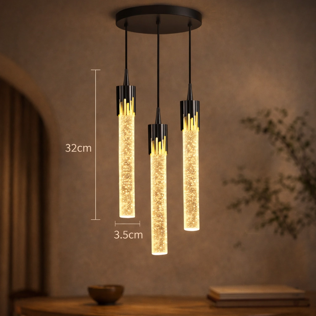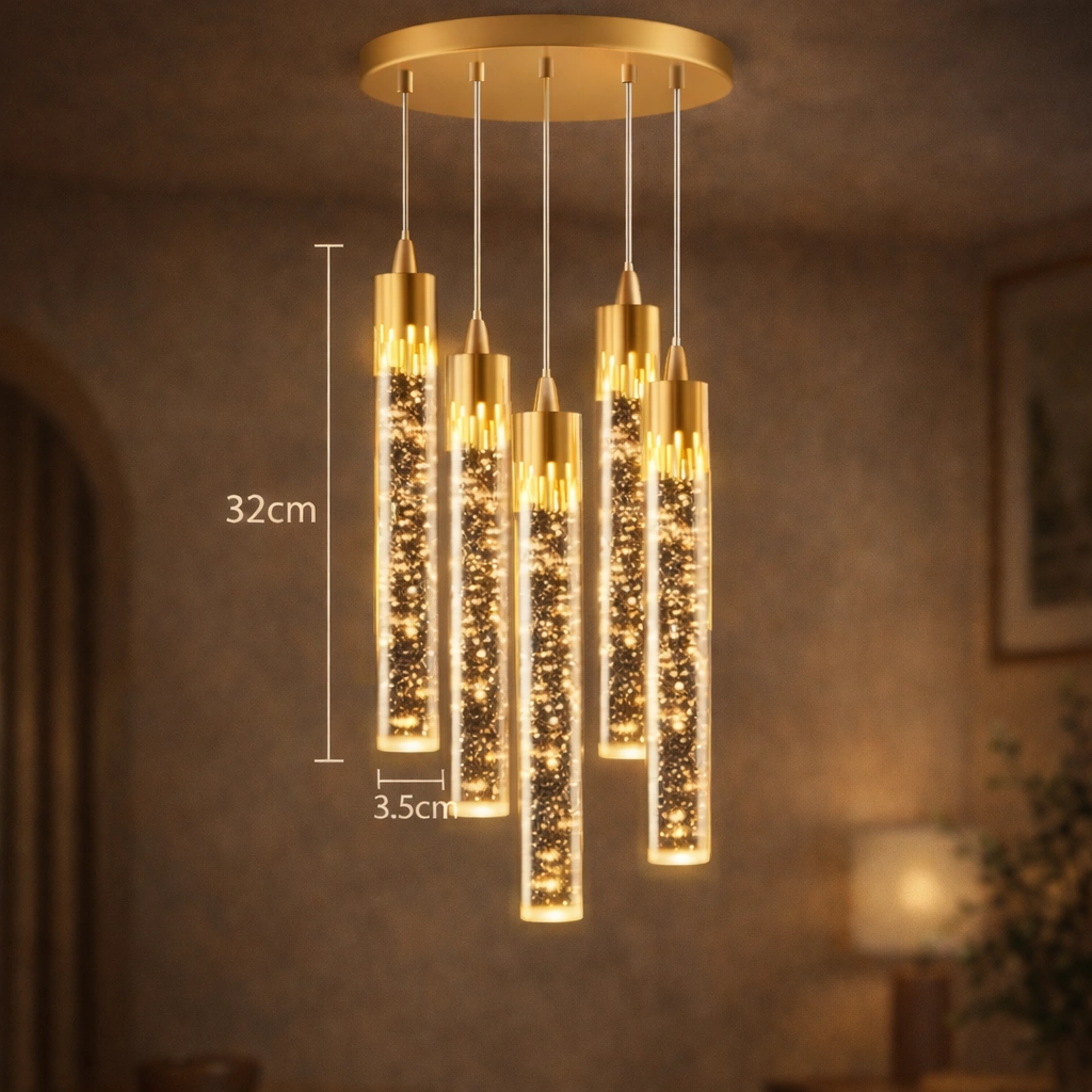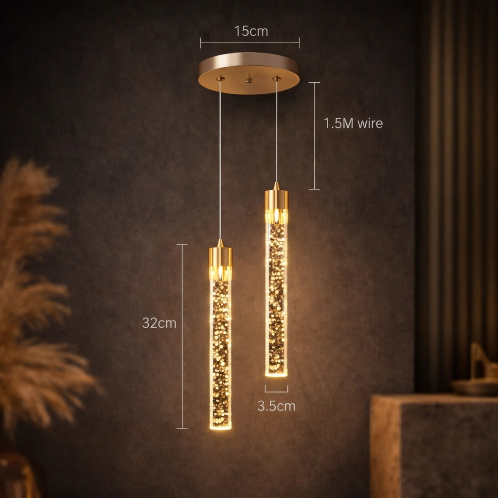 LYRION to nie tylko lampa – to świetlny akcent, który łączy design z funkcjonalnością. Jej forma inspirowana jest światłem unoszącym się w powietrzu – lekkim, dynamicznym, a zarazem eleganckim. Dzięki połączeniu szczotkowanego aluminium z kryształowym akrylem, ta wisząca lampa zachwyca detalem, jakością i unikalnym efektem świetlnym z mikropęcherzykami w szkle.