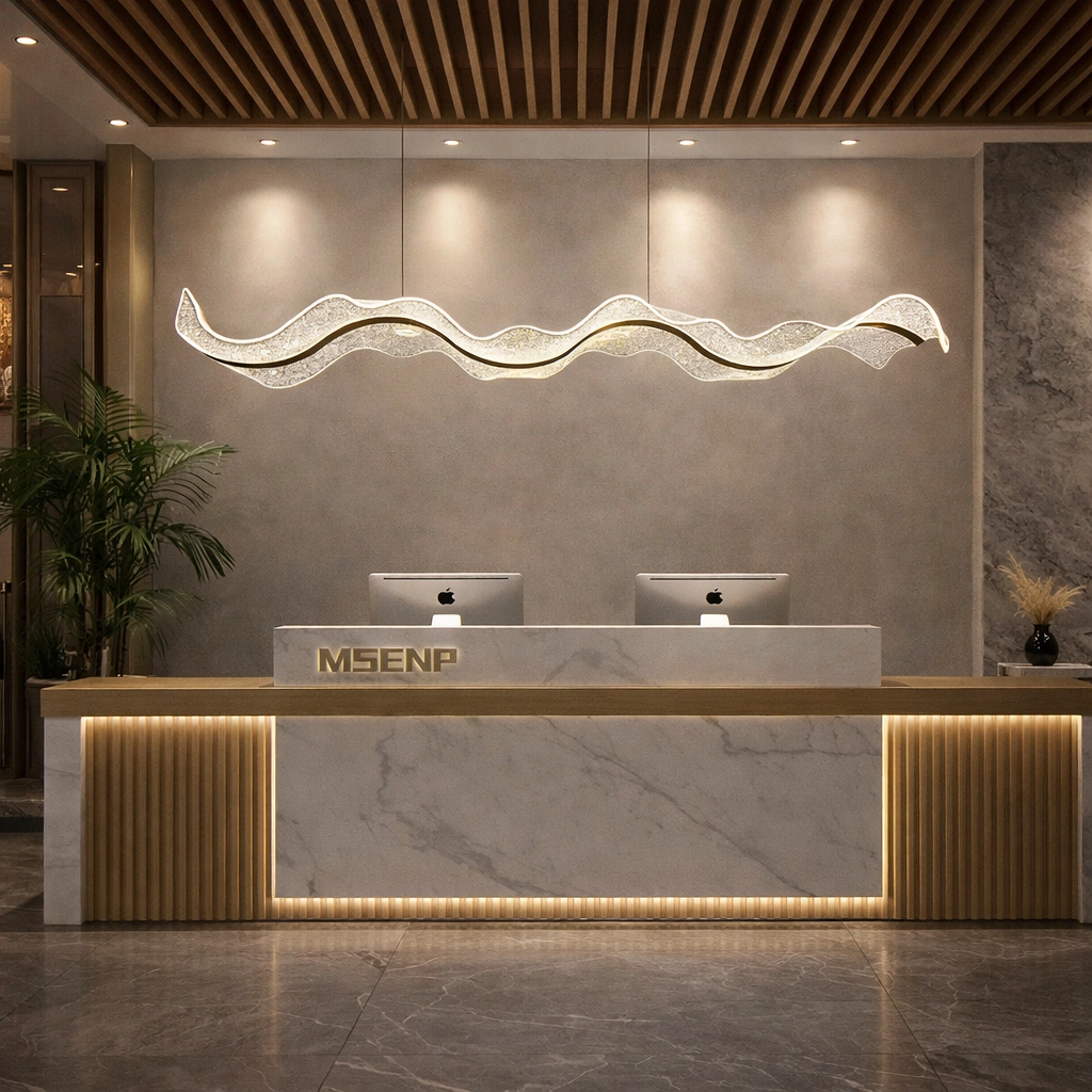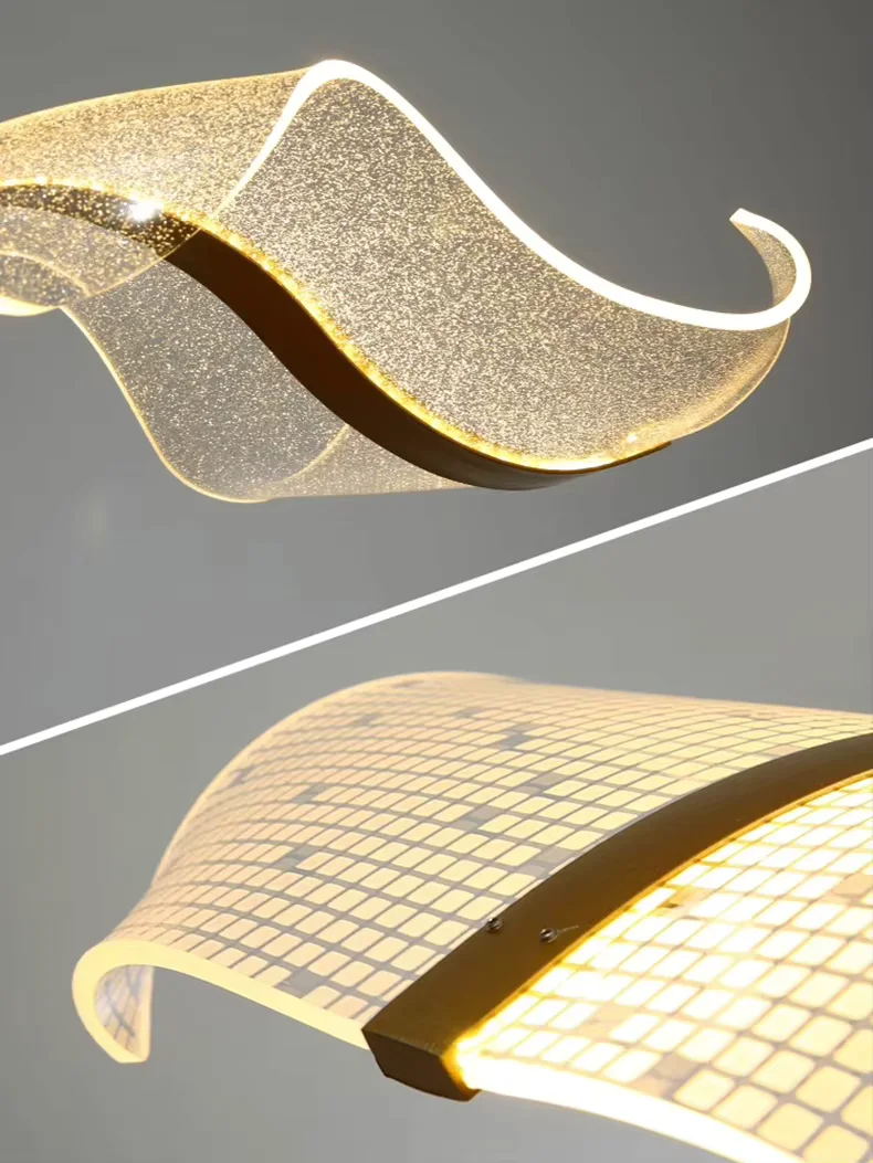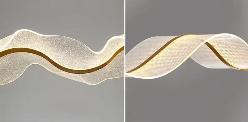 Luminara Wave to połączenie artystycznej swobody z funkcjonalnością. Jej organiczna forma przypomina ruch fal na wodzie – lekka, dynamiczna i pełna gracji. Zawieszona nad stołem w jadalni, blatem kuchennym, recepcją lub w salonie, staje się nowoczesną rzeźbą świetlną.