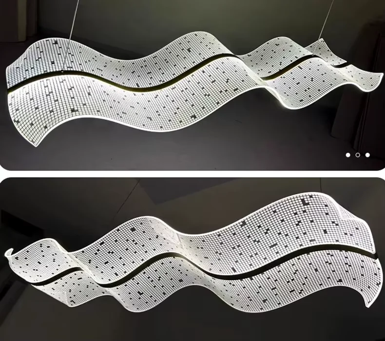 Elegancka i futurystyczna lampa sufitowa o falistej formie, idealna do salonu, jadalni, biura czy hotelowego lobby. Wykonana z wysokiej jakości stopu metalu i klosza PMMA o wysokiej przepuszczalności światła. Regulowana wysokość zawieszenia, kilka długości do wyboru (100–220 cm), nowoczesne sterowanie (pilot / aplikacja), możliwość zmiany barwy i jasności światła (2800K–6000K). Energooszczędne LED, nowoczesny design.