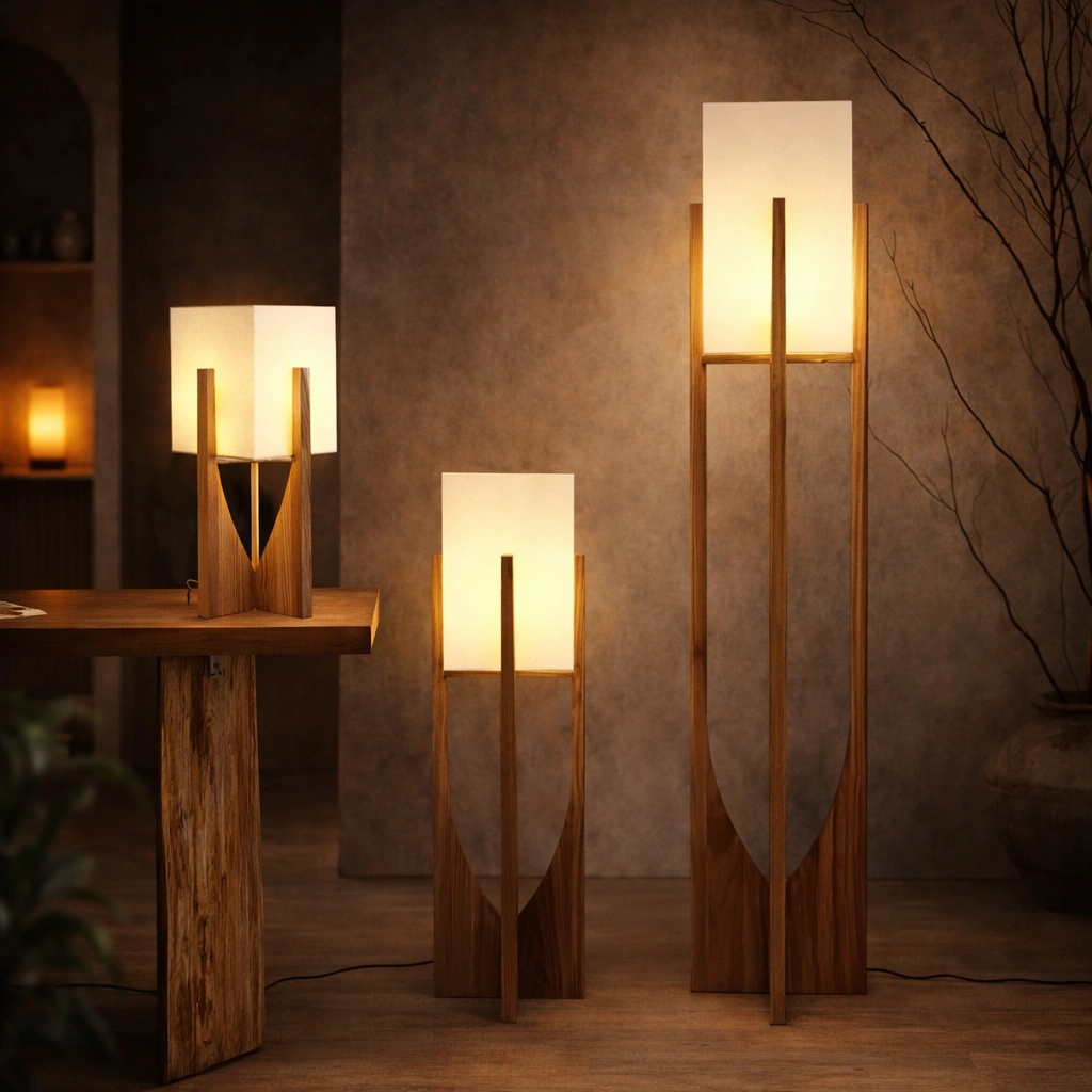 Drewniana lampa podłogowa LIVRA – elegancja naturalnego światła w stylu skandynawskim