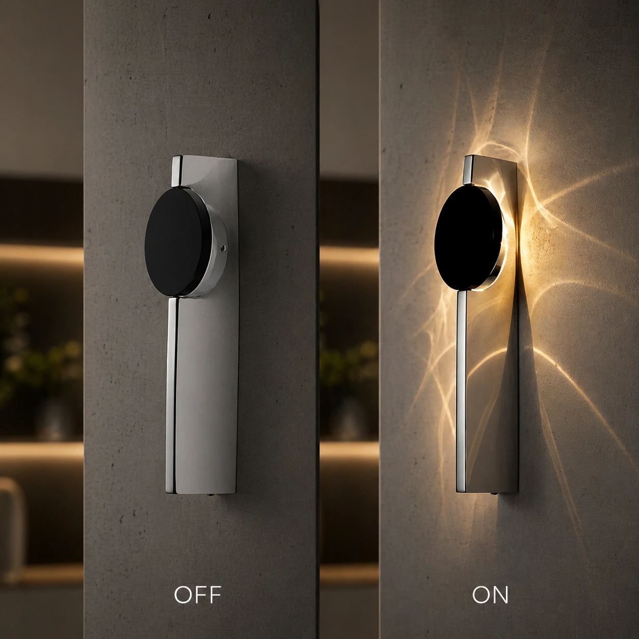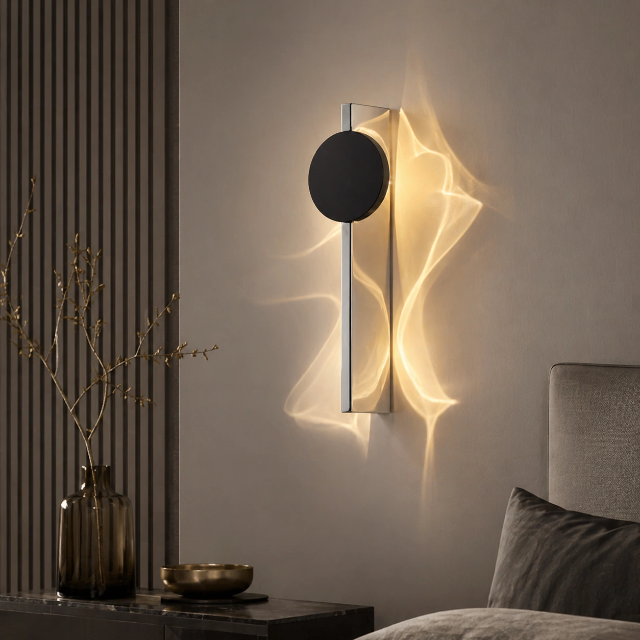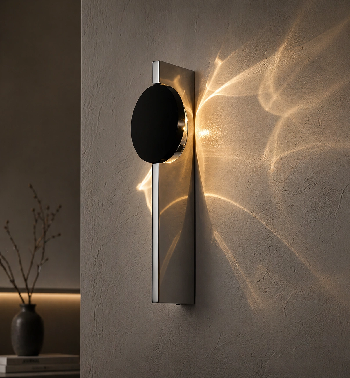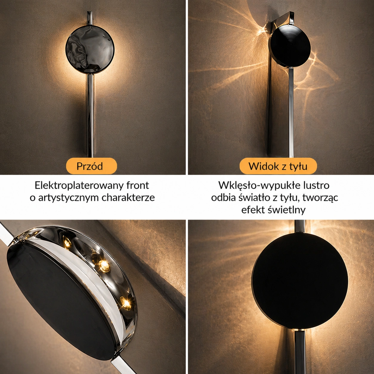 Poznaj REFLÉRA – wyjątkowy kinkiet ścienny LED w wykończeniu chromowanym, który redefiniuje pojęcie oświetlenia dekoracyjnego. To nie jest zwykła lampa. To zjawisko świetlne, które tworzy na ścianie miękkie, organiczne refleksy przypominające falującą aurę światła.