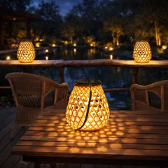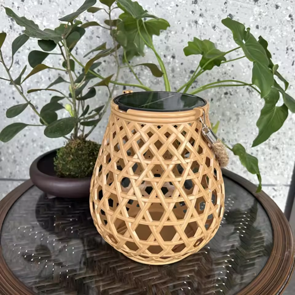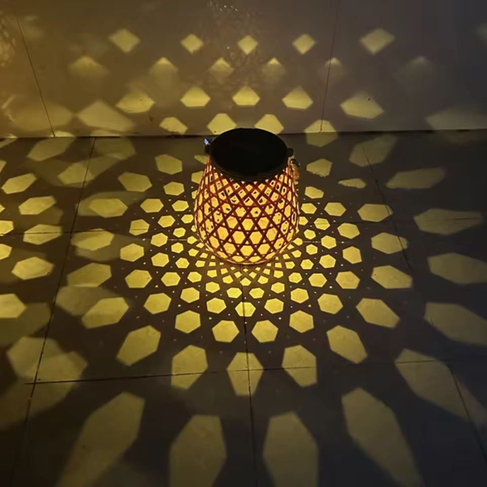 Stylowa latarnia z efektem świetlnej mozaiki, zasilana energią słoneczną. Wykonana z tworzywa imitującego rattan, idealna do dekoracji ogrodu, tarasu lub balkonu. Automatyczne włączanie o zmierzchu, wodoodporność IP44, do 68 h świecenia po naładowaniu.