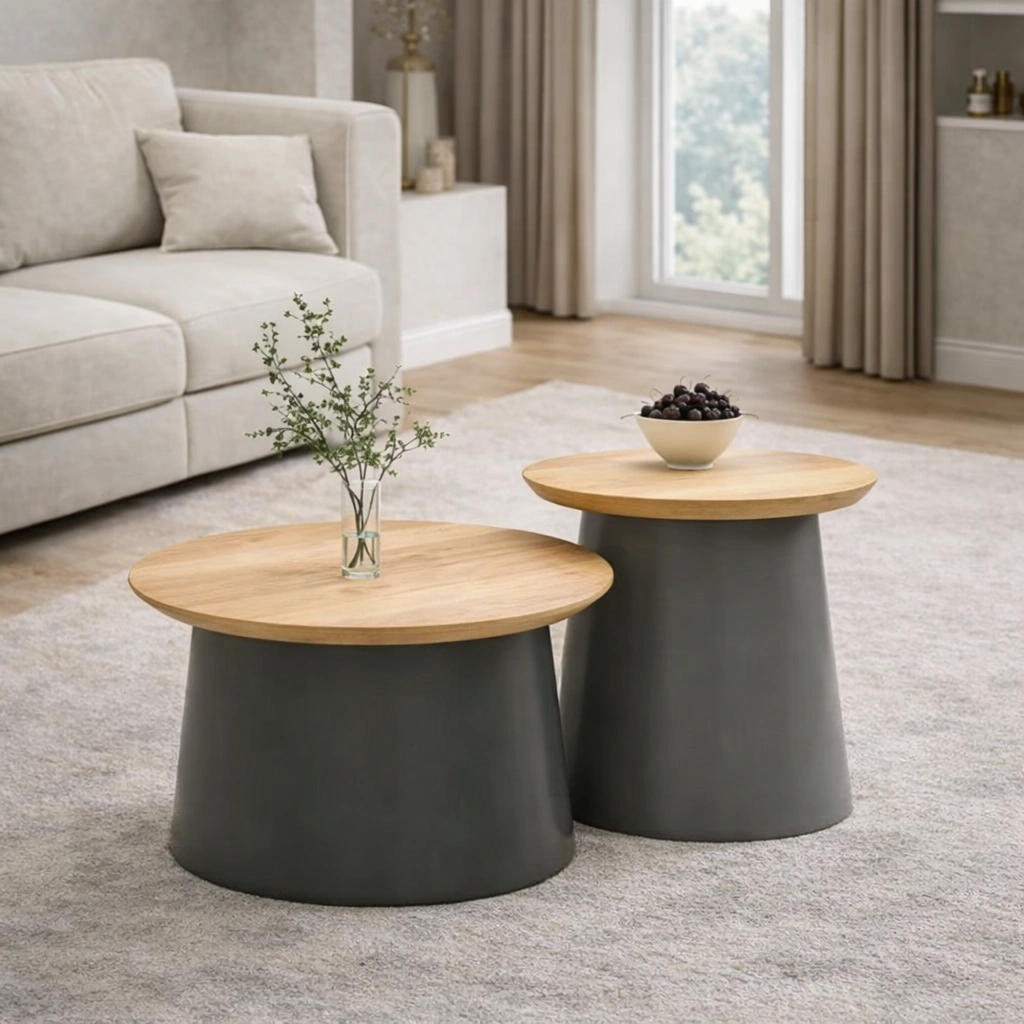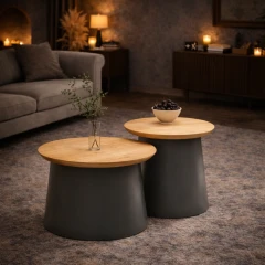 TIVANO to stolik kawowy, który łączy w sobie minimalizm współczesnego designu z ciepłem naturalnych materiałów. Jego subtelna, okrągła forma i połączenie drewna z trwałą podstawą z polipropylenu czynią go uniwersalnym elementem wystroju wnętrza – od nowoczesnych apartamentów po przytulne domy w stylu japandi.