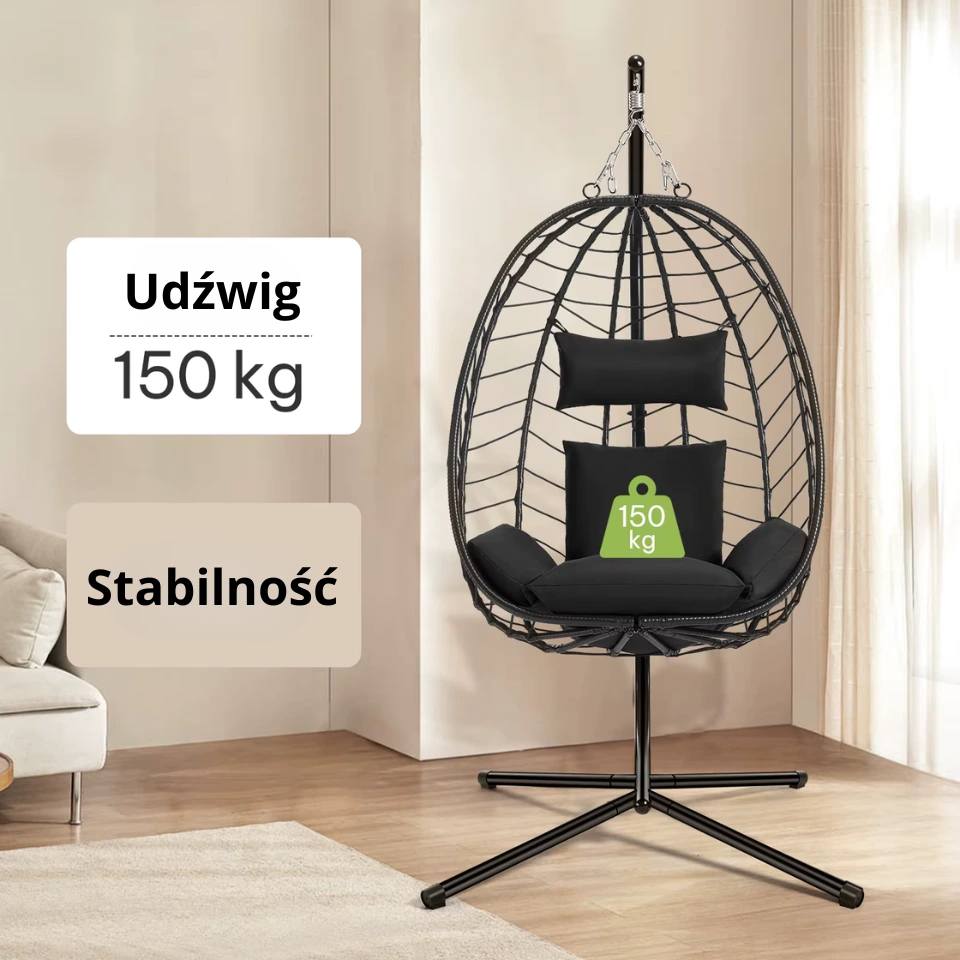 1x fotel wiszący EIRA z siedziskiem typu „jajko”
